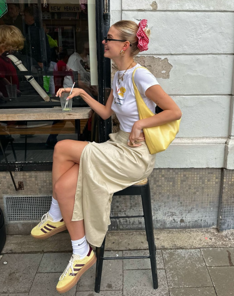 Looking to layer? Mango’s collaboration with Siedres features a halterneck tee over a mini. Play with textures, like Tine van Cauwenberghe who paired a pullover in cashmere with a maxi skirt in silk. A graphic sweatshirt is a great way to get into this trend for the minimalist.